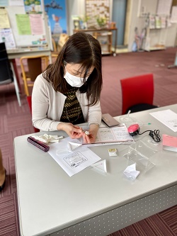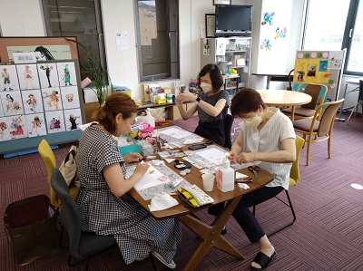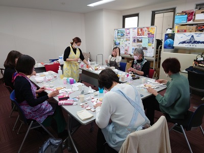 2021年4月13日(火)グルーデコ!! ブローチ、髪留め、ピアス、などみなさん思い思いの作品をつくりました
