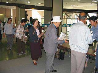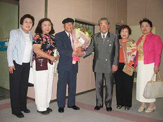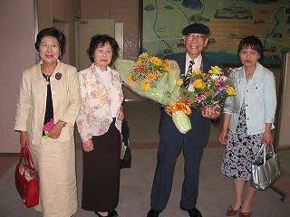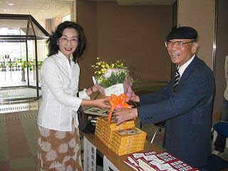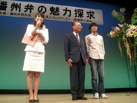 ![]() 井上先生と賢ちゃん (左:司会者 青田さん) |